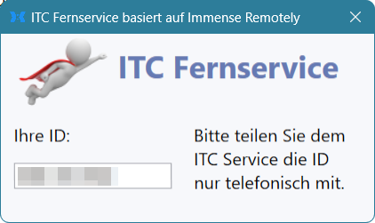 Die Nutzung der Fernwartung geschieht beim ITC Service ausschließlich im Kontext eines telefonischen Servicefalls, der von Ihnen initiiert wurde. Niemand von ITC wird sie jemals ohne diesen Kontext auffordern, ihm Zugriff auf Ihren Rechner zu geben. Wenn so etwas passiert oder Ihnen irgend etwas anderes nicht geheuer ist, lassen Sie bitte keinesfalls Zugriff zu und sprechen Sie uns oder eine andere kompetente Person zu dem Vorfall an.